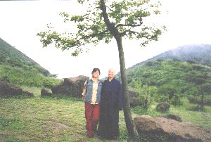 一僧一俗(14屆校友 郭麗娟與德範法師)徜徉菩提樹下,法喜充滿。