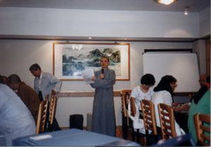 會長厚觀法師做會務報告,散發光與熱。