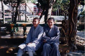 齎因法師、淨照法師緬懷良晨美景,高興得嘴合不來。